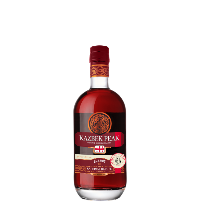 Gruzińska brandy to połączenie kilkusetletniej tradycji destylacji, wielowiekowej tradycji uprawy winorośli i doskonałych składników: soczystych lokalnych winogron oraz krystalicznie czystej wody. Kazbek Peak Brandy Saperavi Barrel to unikalna brandy, spędzająca co najmniej 6 miesięcy na leżakowaniu w dębowych beczkach używanych wcześniej do starzenia gruzińskiego wina ze słynnego szczepu Saperavi. Miesiące spędzone w winnej beczce oprócz klasycznych aromatów karmelu, wanilii i orzecha laskowego ukazują ujmujące nuty czerwonych i ciemnych owoców, co nadaje degustacji brandy zupełnie nowy poziom przyjemności.