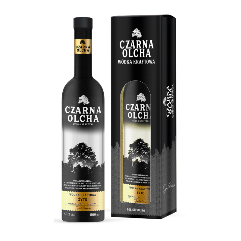 Wódka Czarna Olcha Żyto - to kwintesencja polskiej sztuki destylacji. Swój wyjątkowy, delikatny smak zawdzięcza wielopokoleniowym metodom produkcji. Ręcznie rozlewana w limitowanych partiach produkcyjnych na polskim Podlasiu ze spirytusu z polskiego żyta. Czysta, w nosie wyczuwalna delikatna nuta bazy fermentacyjnej, w smaku łagodna i delikatna. Moc to 40%. Charakterystyczny i unikatowy design butelki podkreśla szczególny charakter produktu, a złota etykieta nawiązuje do koloru zboża oraz nadaje produktowi niezwykłej elegancji i jakości. Dbałość o każdy detal, odwzorowanie linii lasu oraz efekt skalowania symbolu drzewa zachwycą każdego konsumenta, który weźmie Wódkę Kraftową Czarna Olcha Żyto do ręki.