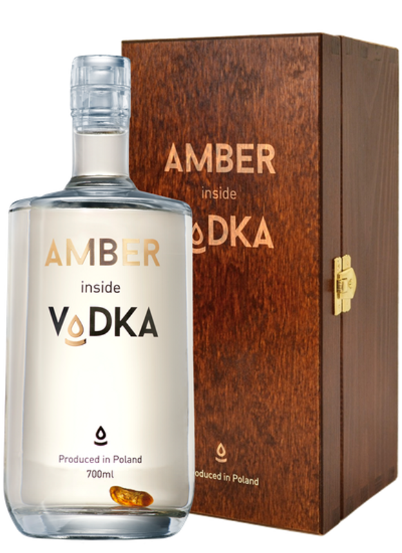 Amber Inside Vodka to wódka klasy premium produkowana z połączenia doskonałej jakości spirytusu zbożowego oraz maceratu bursztynowego tworzonego na bazie naturalnych, bałtyckich bursztynów. Każda butelka zdobiona jest 24-karatowym złotem, a wewnątrz zawiera kamień bursztynu, który jest dowodem powstawania Amber Vodka wyłącznie z najlepszych składników.