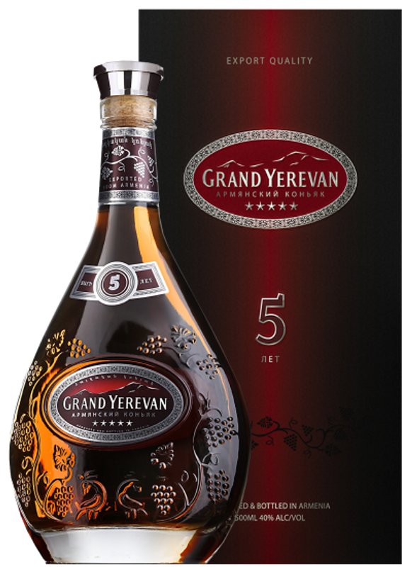Armeńska brandy to jedna z najbardziej rozpoznawalnych brandy na świecie, stanowiąca synonim najwyższej jakości oraz tradycyjnych metod produkcji. Brandy Grand Yerevan jest wytwarzana z palonego wina podczas klasycznego procesu podwójnej destylacji i starzenia co najmniej przez 5 lat w ormiańskich dębowych beczkach. W tej brandy wykorzystuje się ormiańskie tradycyjne odmiany winorośli uprawiane w Ararat Valley.