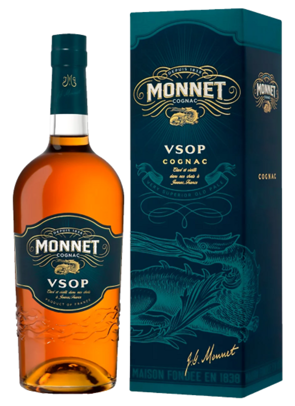 Monnet VSOP jest mistrzowsko zmieszany z eaux-de-vie specjalnie dobranych ze względu na ich wspaniałą postać. Cierpliwie starzony w beczkach dębowych Limousin przez co najmniej cztery lata, oferuje wyśmienity smak jakości, z której znany jest Dom Monnet. Czysty bursztynowy kolor Monnet VSOP ujawnia aromaty wanilii i suszonych owoców. Na podniebieniu jest cudownie bogaty i zrównoważony, z nutami miodu, nugatu i długim, gładkim wykończeniem.