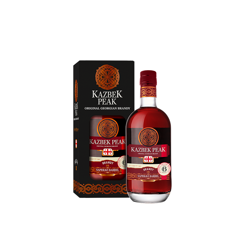 Gruzińska brandy to połączenie kilkusetletniej tradycji destylacji, wielowiekowej tradycji uprawy winorośli i doskonałych składników: soczystych lokalnych winogron oraz krystalicznie czystej wody. Kazbek Peak Brandy Saperavi Barrel to unikalna brandy, spędzająca co najmniej 6 miesięcy na leżakowaniu w dębowych beczkach używanych wcześniej do starzenia gruzińskiego wina ze słynnego szczepu Saperavi. Miesiące spędzone w winnej beczce oprócz klasycznych aromatów karmelu, wanilii i orzecha laskowego ukazują ujmujące nuty czerwonych i ciemnych owoców, co nadaje degustacji brandy zupełnie nowy poziom przyjemności.