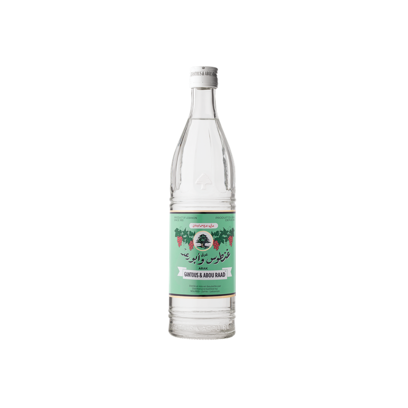 Arak Gantous & Abou Raad Arak Gantous & Abou Raad to kultowy i od dziesięcioleci najlepiej sprzedający się libański arak. Ten alkohol powstaje poprzez trzykrotną destylację białych winogron. Istotnym etapem procesu jest dodanie anyżu do pierwszej destylacji, aby nadać mu charakterystyczny aromat i smak anyżu. Aby cieszyć się nim w pełni, zaleca się rozcieńczenie go w stosunku 1:2, ponieważ arak sam w sobie nie jest łatwym trunkiem do spożycia - dodając wodę zmienia się jego barwa na mleczną.Gdy arak jest już odpowiednio rozcieńczony, przelewa się go do wypełnionych wcześniej lodem kubeczków. Kolejność jest istotna, ponieważ dodanie lodu do naczynia z arakiem zmieni jego konsystencje na niepożądaną.Ze względu na kolor napój z araku nazywany był „lwim mlekiem”.