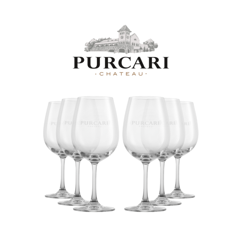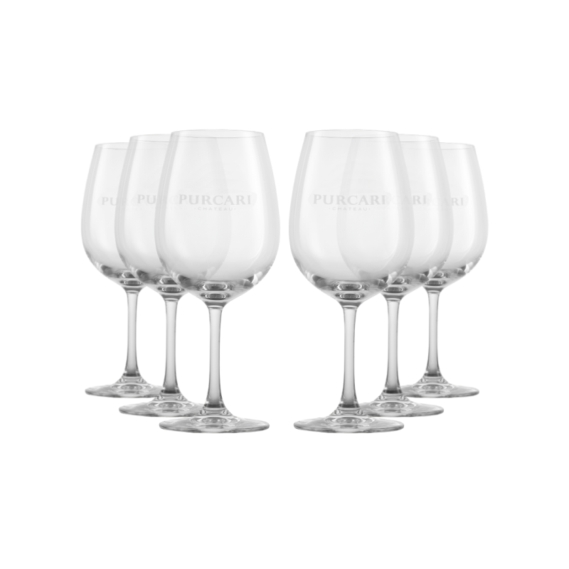 Zestaw sześciu kieliszków Purcari do wina spokojnego.