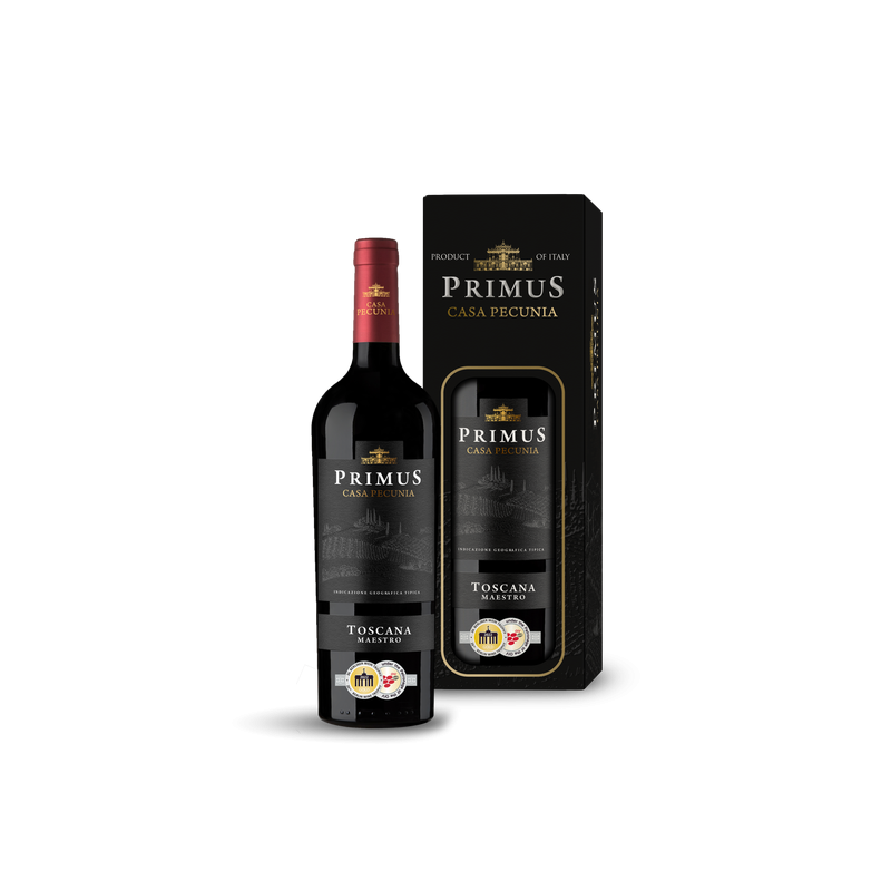 Primus Toscana IGT, to wyjątkowe półwytrawne cuvée stworzone przez doświadczonych winemakerów ze starannie wyselekcjonowanych toskańskich winogron. Starzone w dębowych beczkach i doskonalone poprzez leżakowanie w butelce, charakteryzuje się intensywnym rubinowym kolorem oraz bukietem aromatów czerwonych owoców z wyraźnie wyczuwalną nutą wiśni, dojrzałych jeżyn oraz śliwek. Na podniebieniu jest soczyste, lekkie, o przyjemnym, łagodnym finiszu.